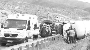 Conductor de camión presentó lesiones leves tras volcamiento