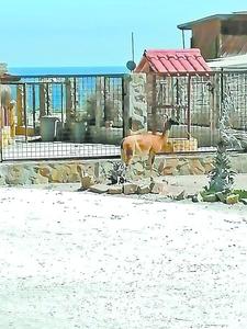 Un guanaco en la playa