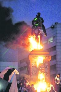 Ejército tilda de "antichilenos" a quienes prendieron fuego al monumento a Baquedano
