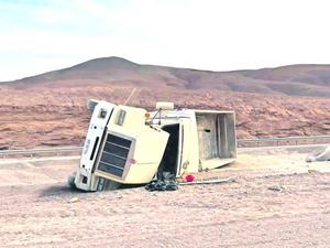Choque lateral involucró a dos camiones en la Ruta 5 Norte: uno terminó volcado