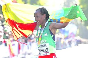 Etíope Gebreslase ganó el maratón con récord de los mundiales