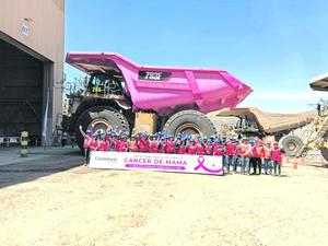 Pintan tolva de color rosado en conmemoración al Día Mundial del Cáncer de Mama
