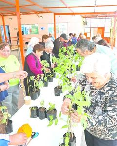 Adultos mayores reciben instrucción sobre el cuidado de plantas